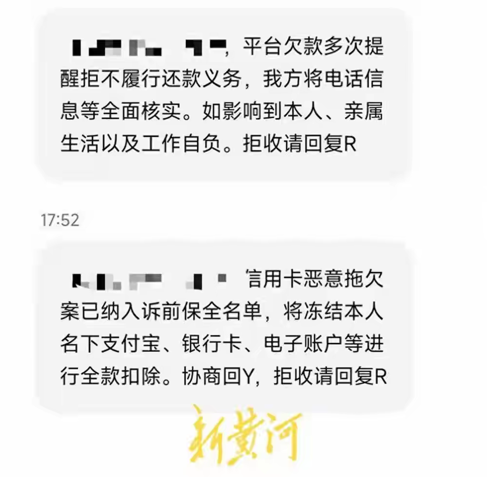 市民反映:逾期一天收到带有“威胁”性质催收短信
